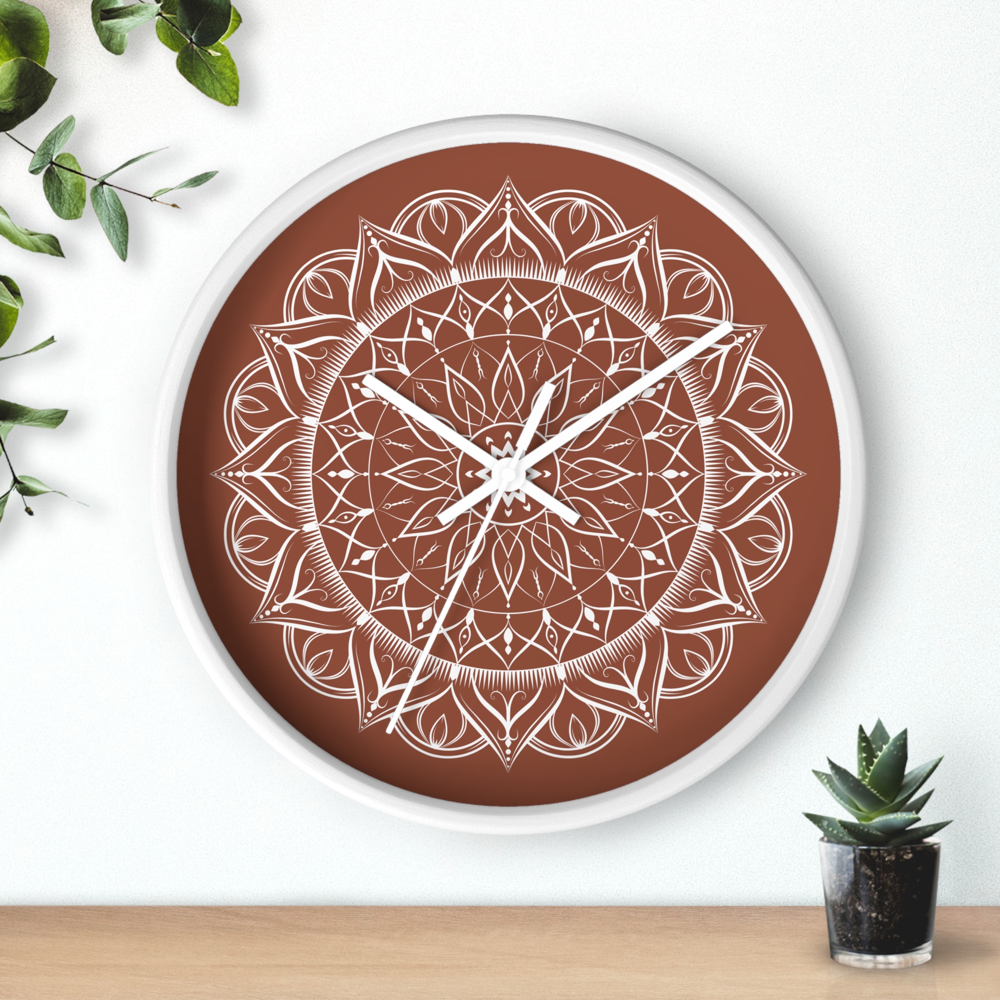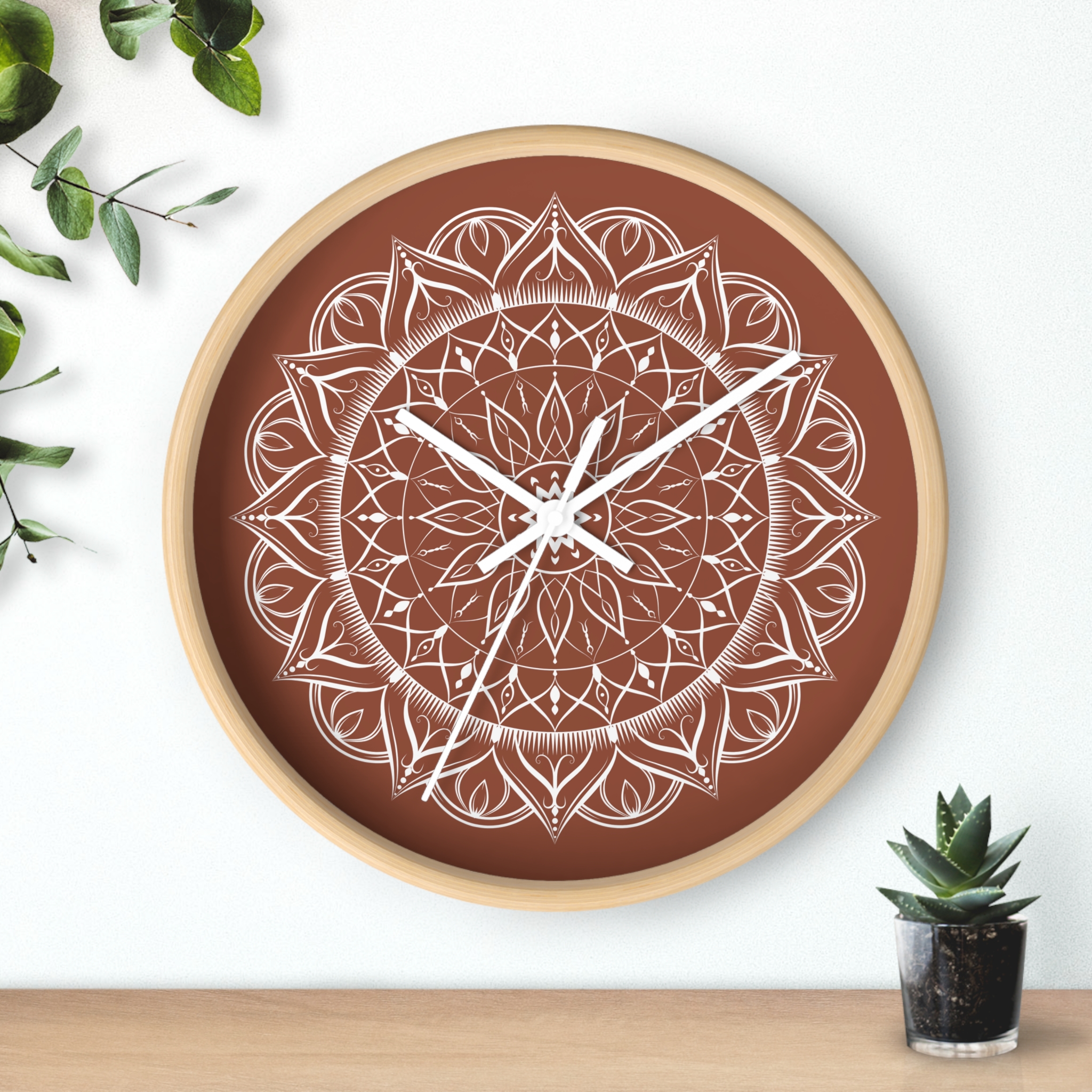 Mandala Wall Clock – Boho Zen Decorative Clock with Hand-Drawn Floral Pattern
